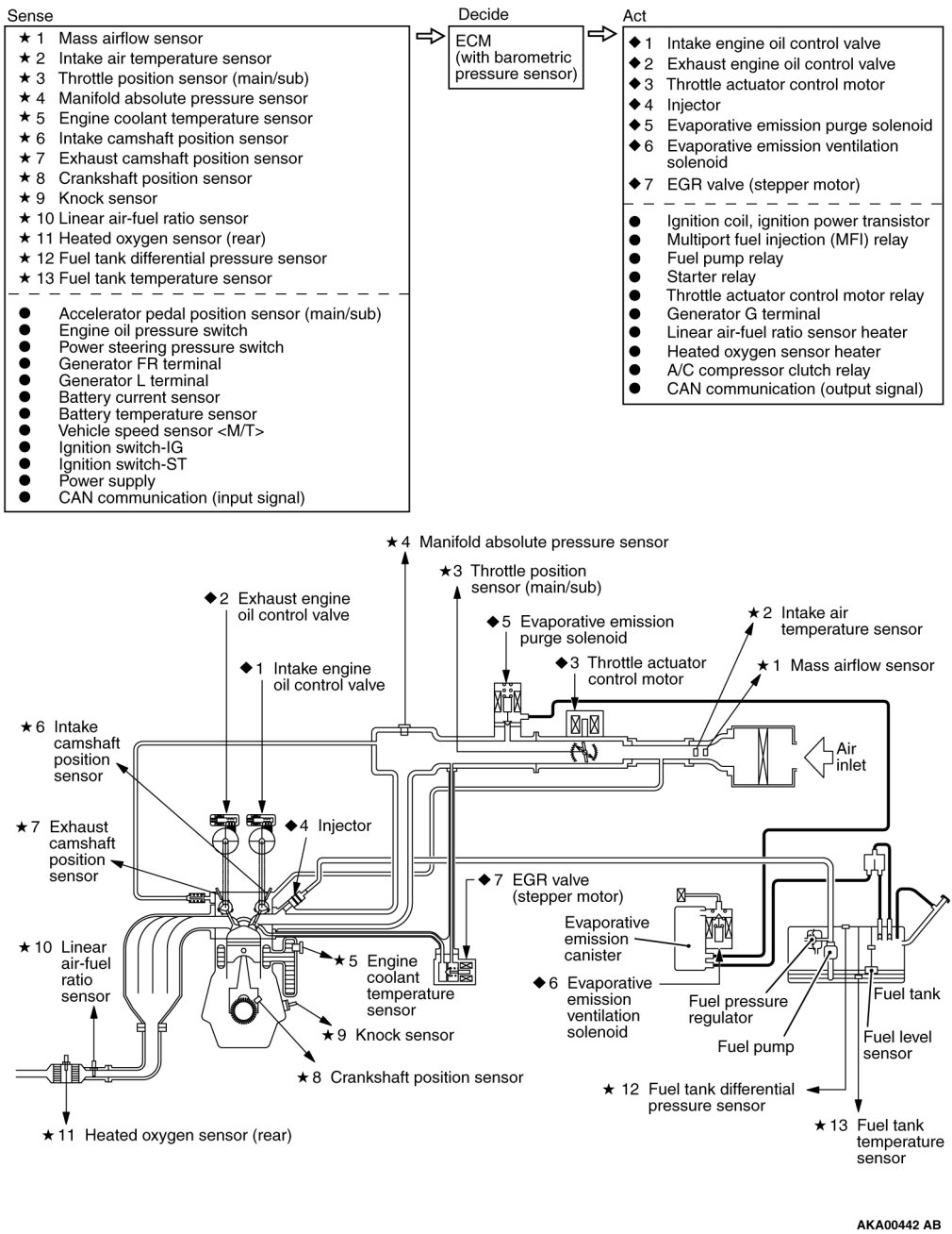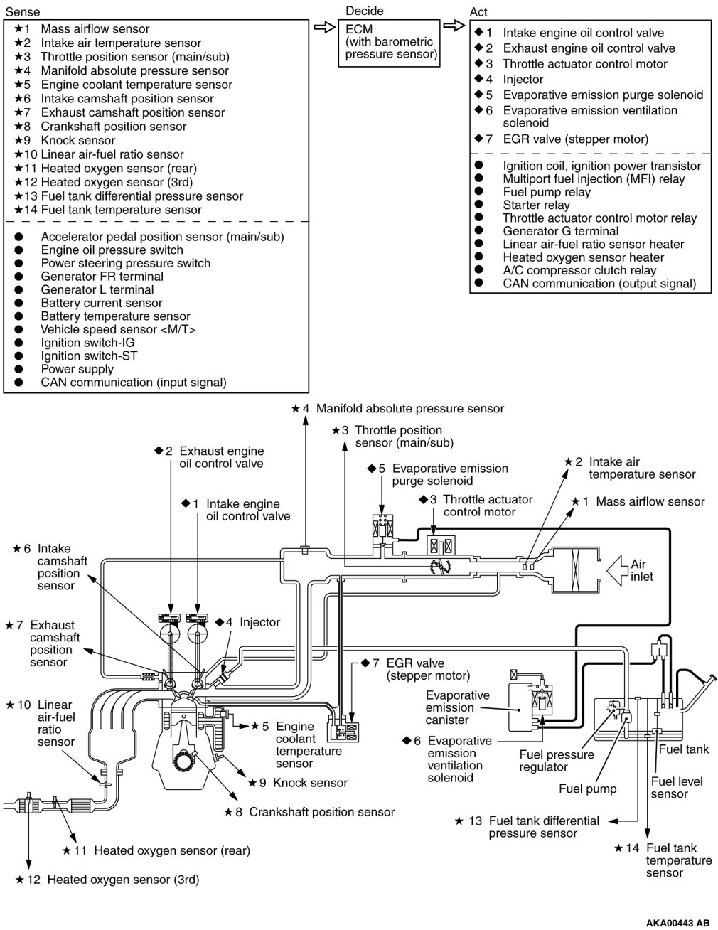 - The RAM data inside the ECM that is related to the sensors and actuators can be read with the scan tool. In addition, the actuators can be controlled by scan tool MB991958 (M.U.T.-III sub assembly) under certain circumstances.