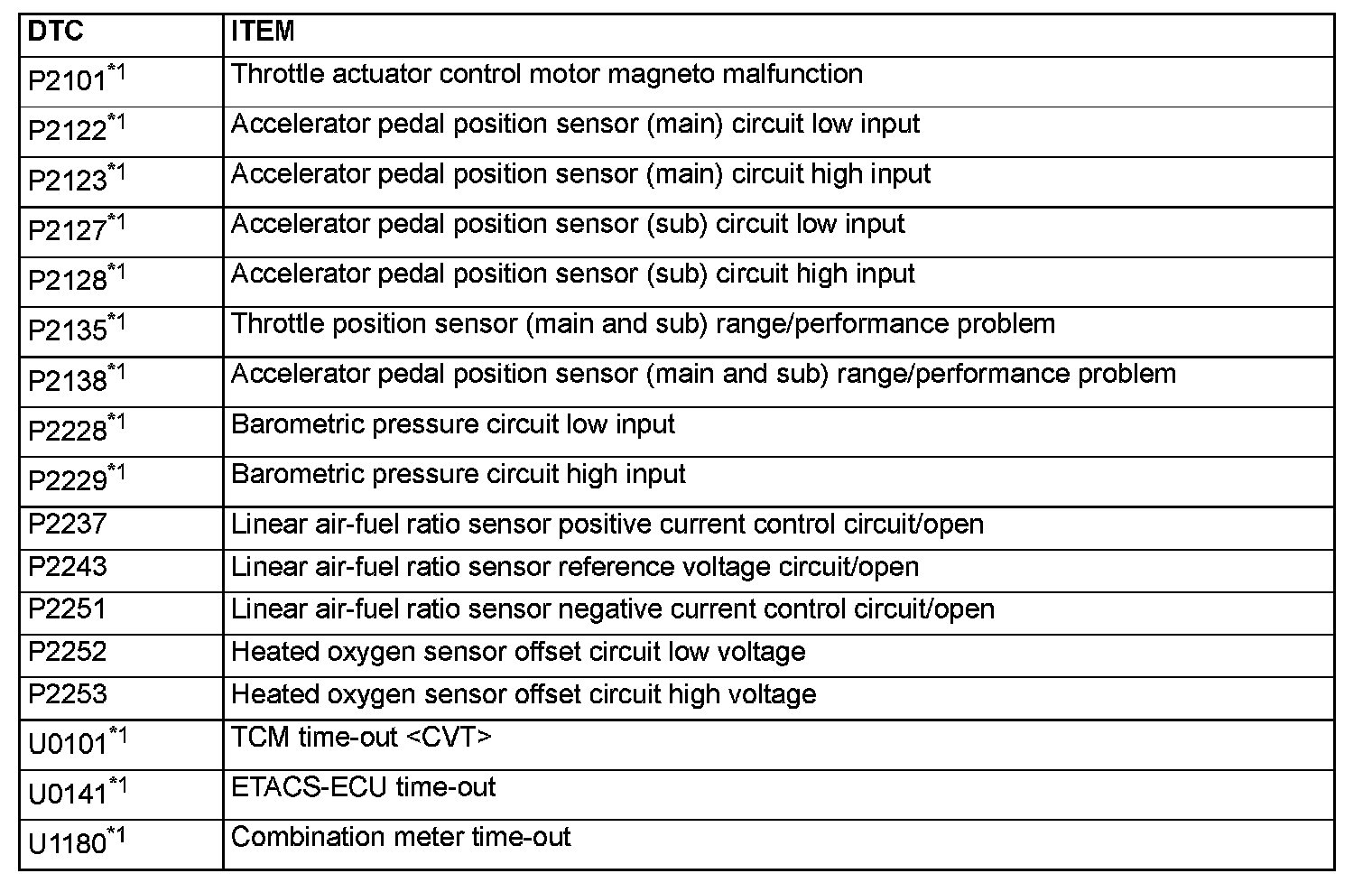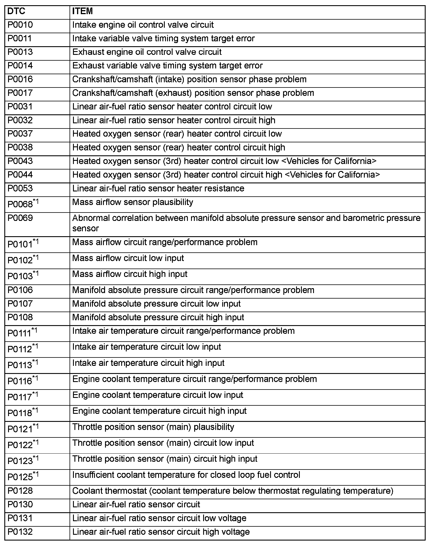 - The codes marked with a "*2" in the diagnosis code number column have the following two conditions for illuminating the Malfunction Indicator Lamp (SERVICE ENGINE SOON or Check Engine Lamp).