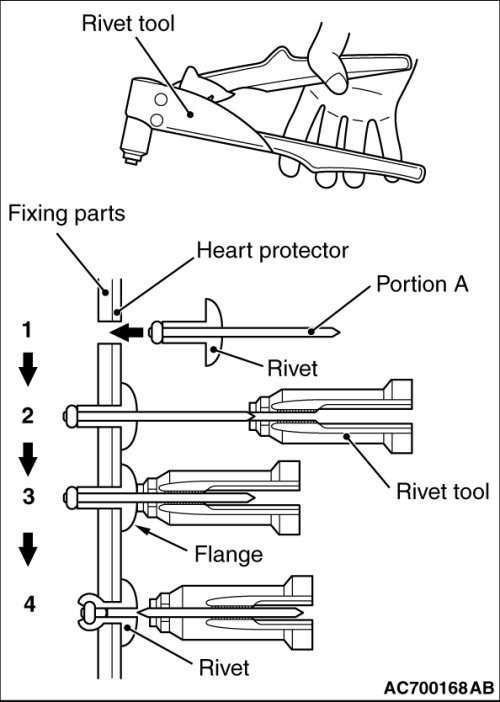 4. Thin part of portion A of the rivet will be cut off and the parts is fixed in position.
