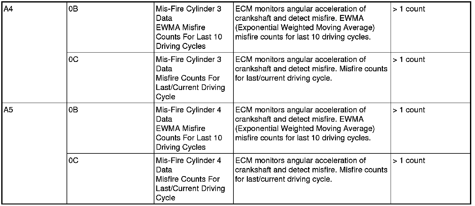 When the monitored test results are erased by the battery disconnection and so on, the ECM outputs the values in hexadecimal of "0000" or "FFFF", otherwise it outputs abnormal values and so on. In case of this, the ECU outputs are handled as invalid-values. When the first monitor