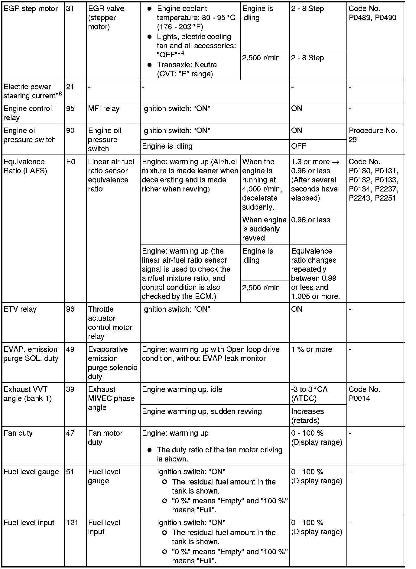 *6: Data items are displayed on the scan tool display, but the electric power steering is not mounted. The data are displayed as "0 A".