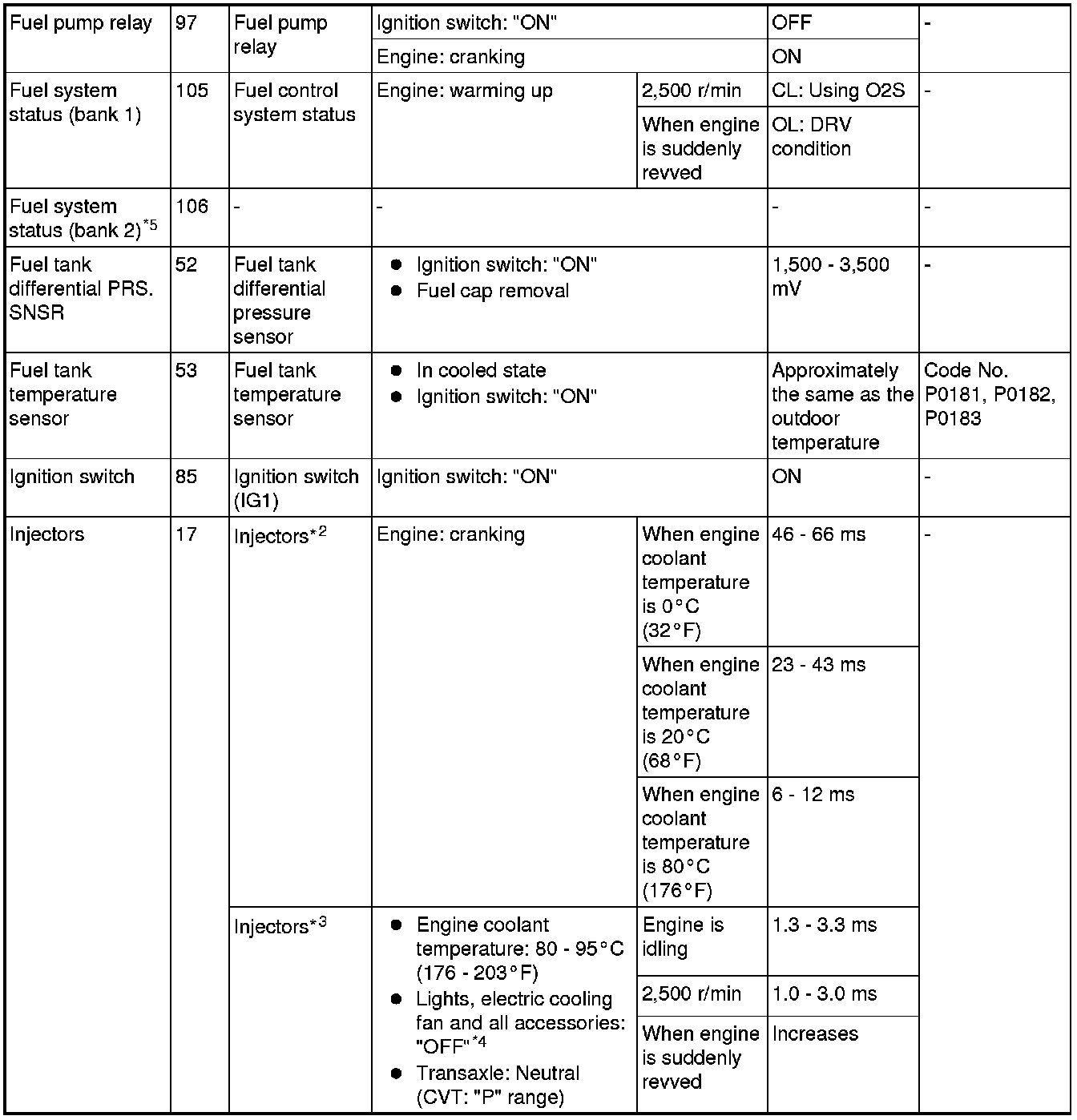 *3: In a new vehicle [driven approximately 500 km (311 mile) or less], the injector drive time is sometimes 10% longer than the standard time.