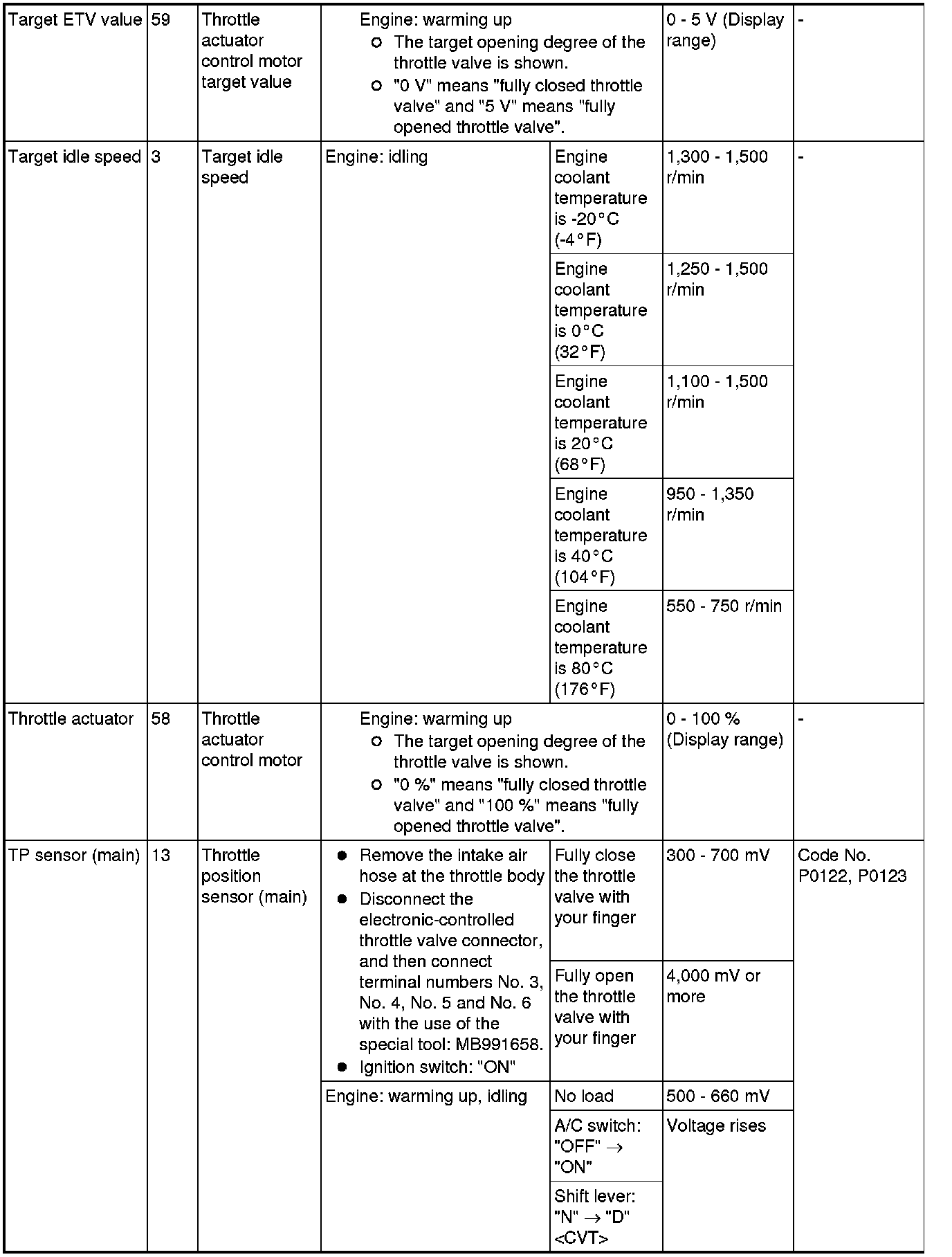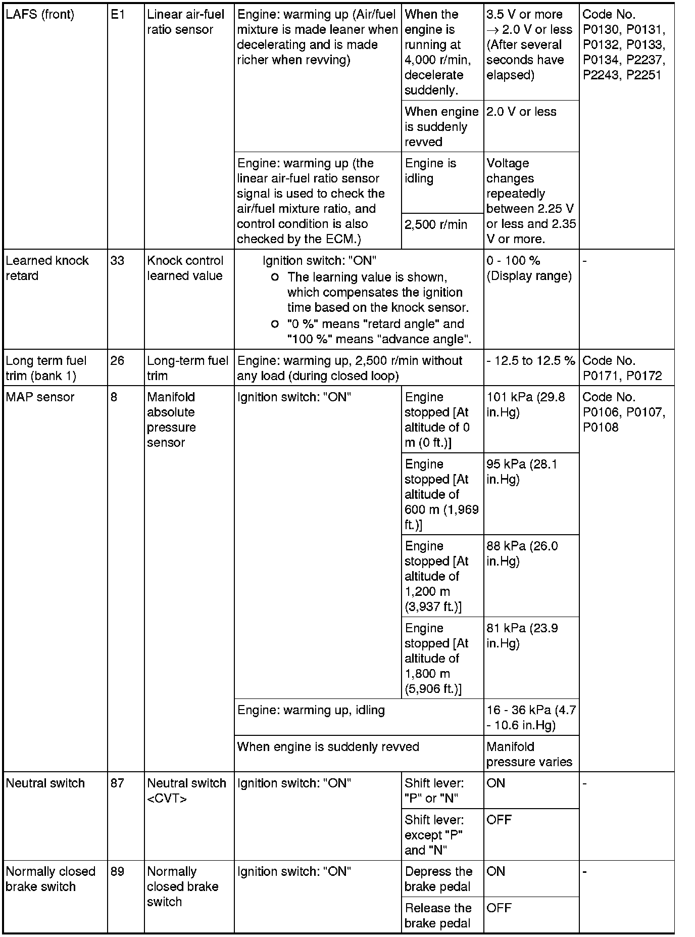 *1: In a new vehicle [driven approximately 500 km (311 mile) or less], the mass airflow sensor output value is sometimes 10% higher than the standard value.
