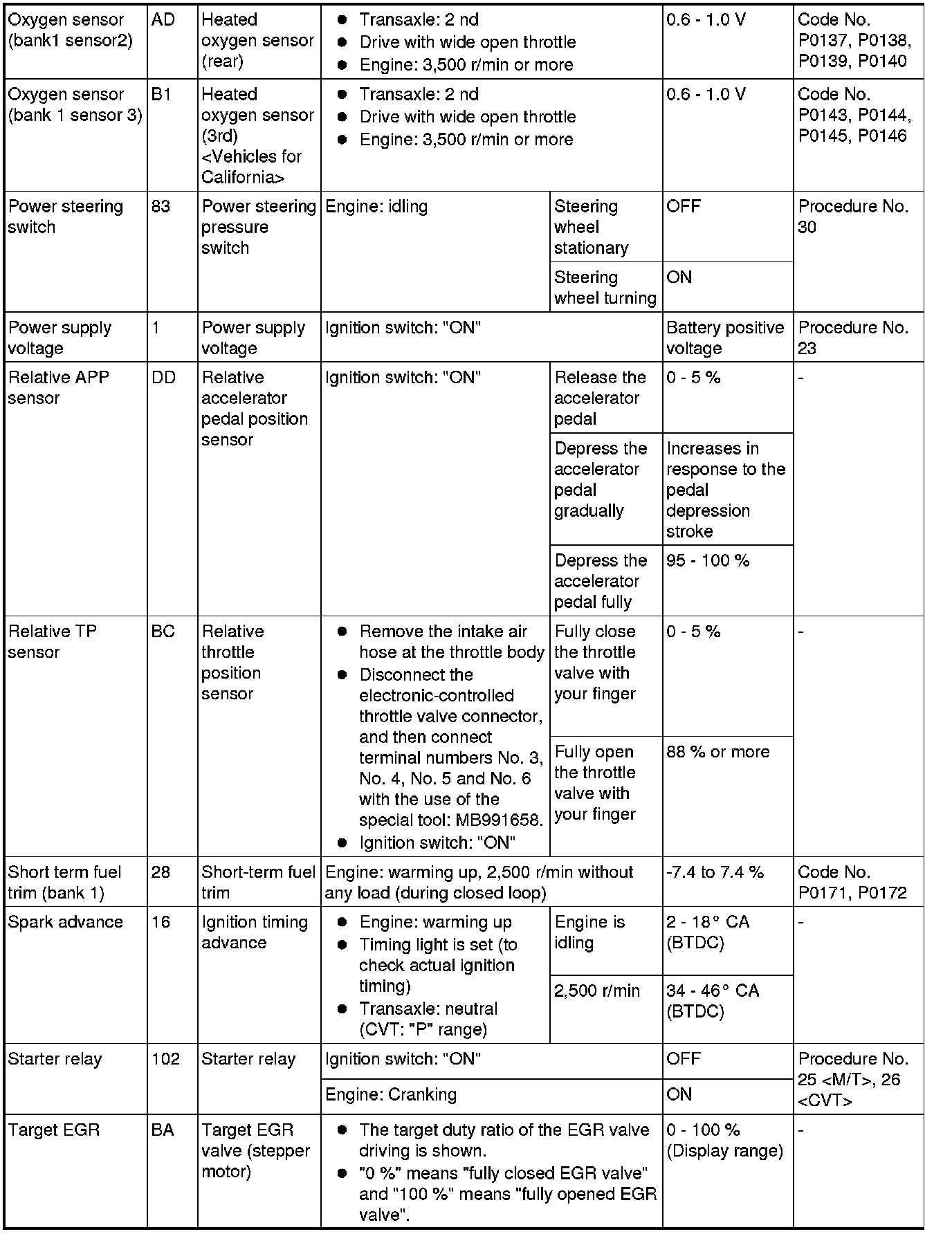 *5: Data items are displayed on scan tool display, but the in-line 4 engine is not applicable and its data is displayed as "N/A".