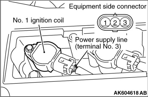3. Set the timing light to the power supply line (terminal No. 3) of the ignition coil No.