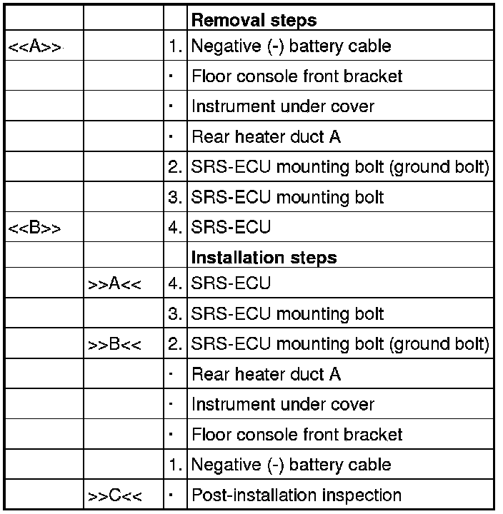 ]]B[[ SRS-ECU MOUNTING BOLT (GROUND BOLT) INSTALLATION