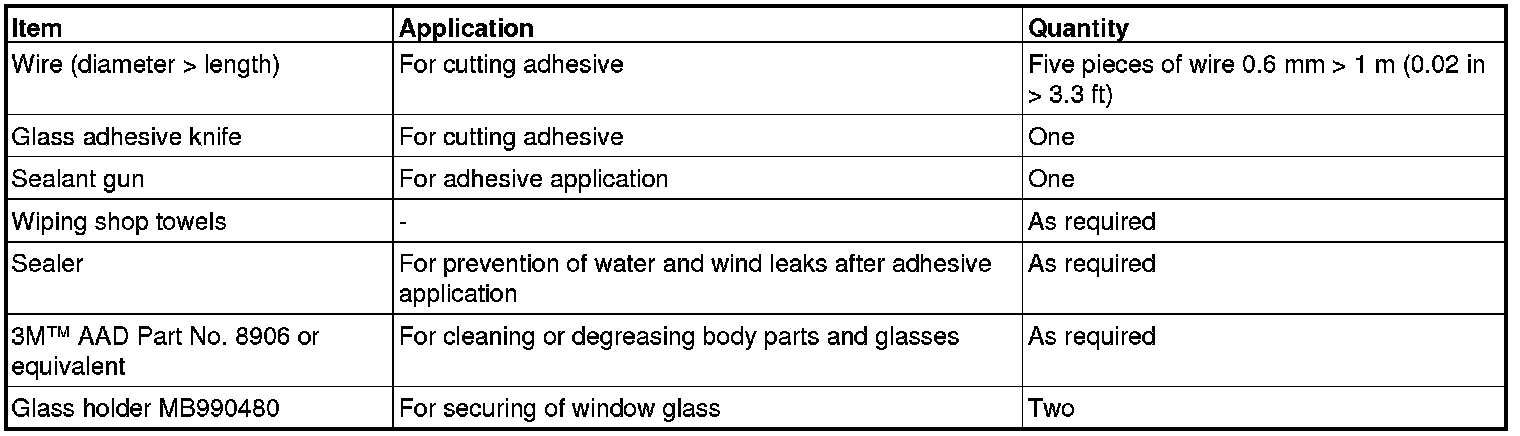 The windshield, rear window glass are attached by an urethane-base adhesive to the window frame. This adhesive provides improved glass holding and sealing, and also gives body openings a greater structural strength.