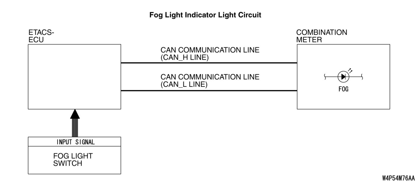 At the same time that the front fog lights are illuminated, the ETACS-ECU sends a signal to illuminate the front fog light indicator via the CAN bus line.