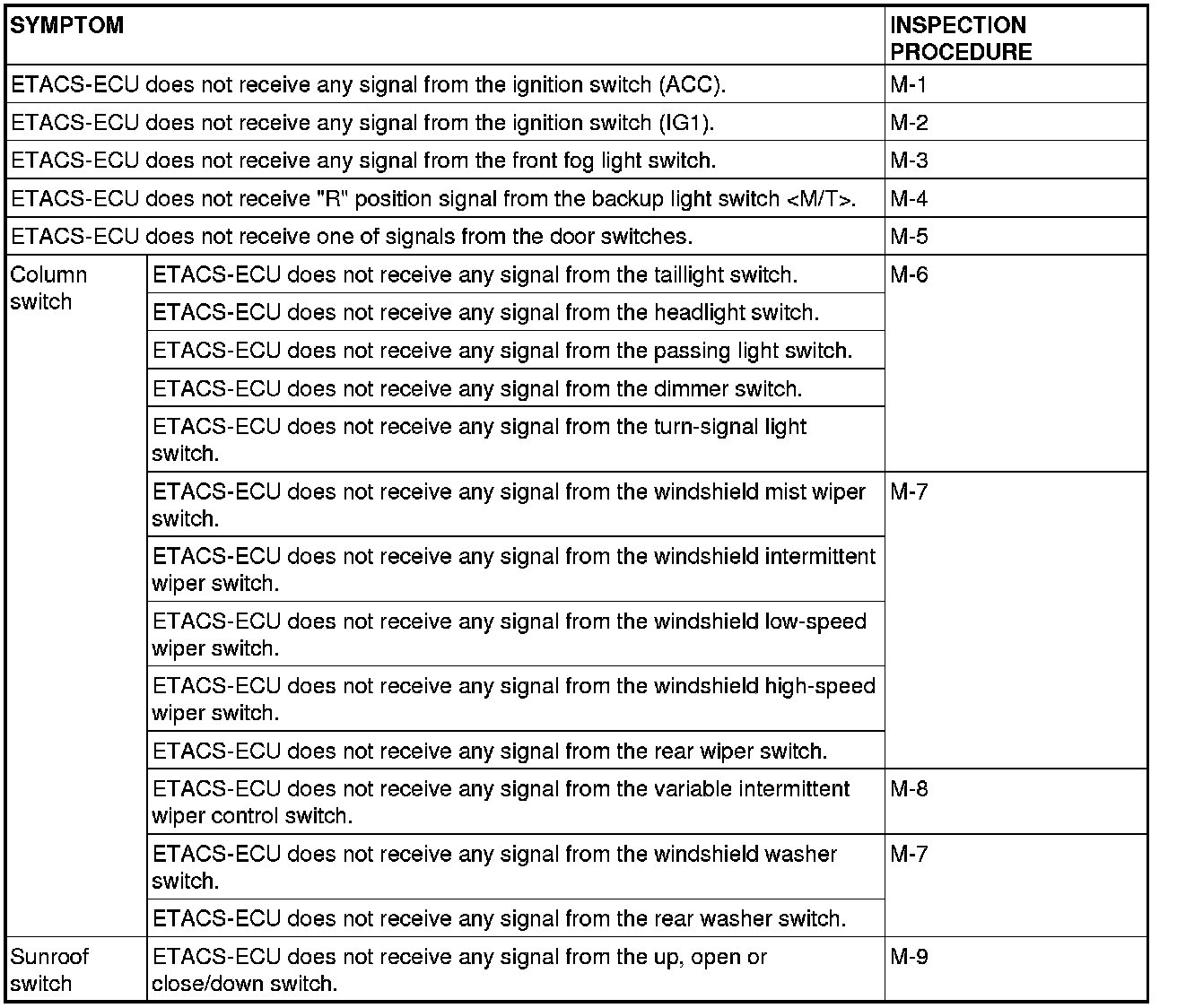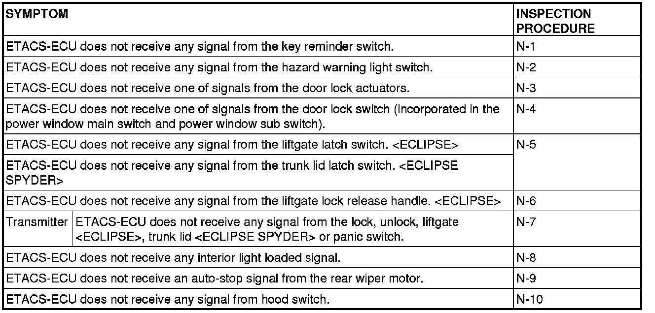 If a problem is found in the Data List inspection, observe the table below.