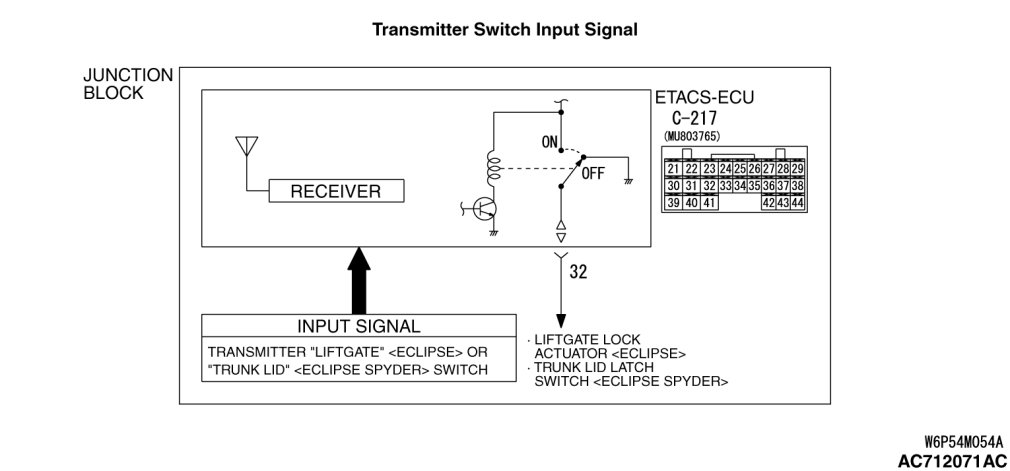 INSPECTION PROCEDURE E-4: Keyless Entry System: The liftgate [ECLIPSE] or trunk lid [ECLIPSE SPYDER] is not opened when the keyless entry transmitter "LIFTGATE" button [ECLIPSE] or "TRUNK LID" button [ECLIPSE SPYDER] is operated.