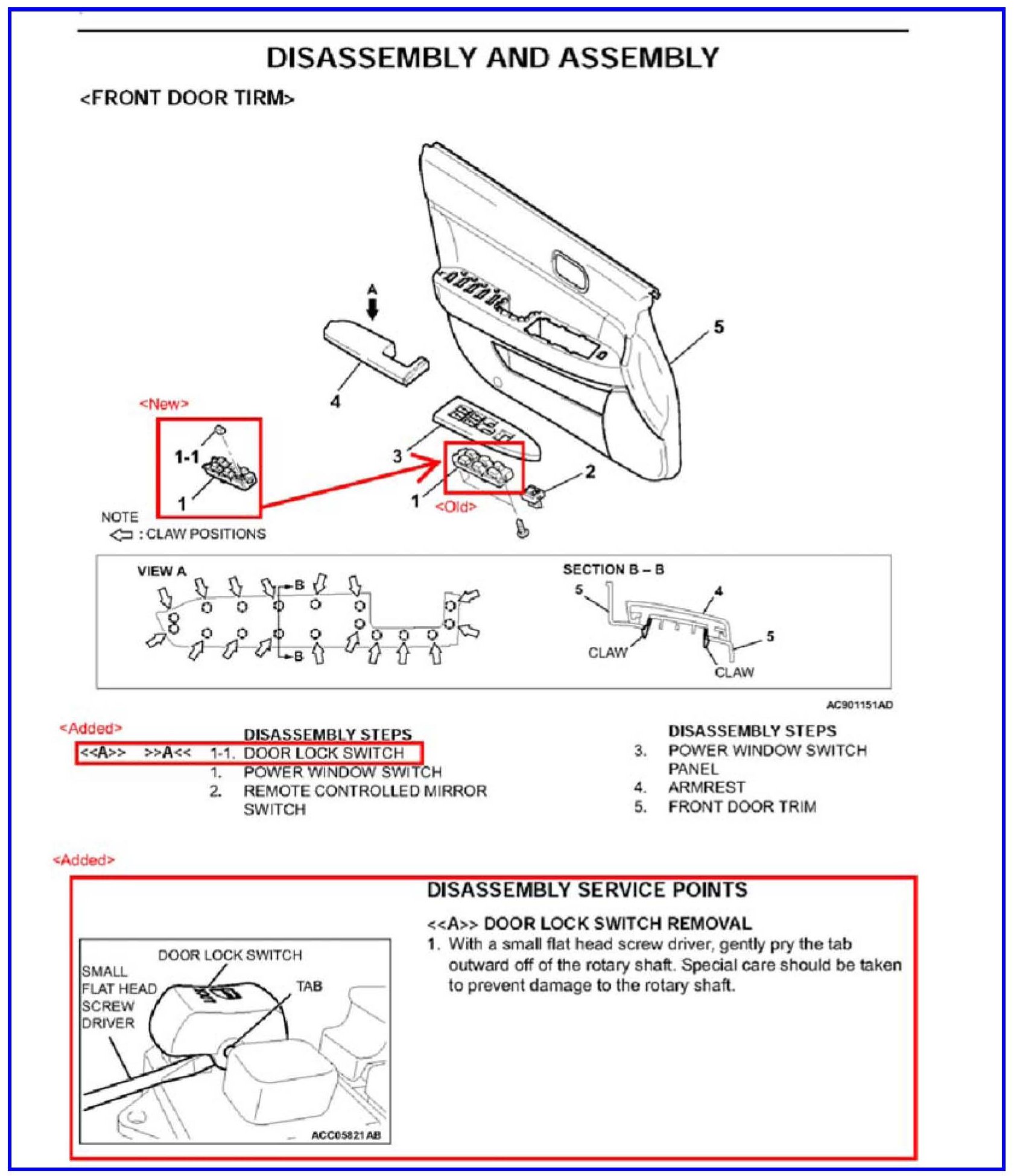DOOR LOCK ROCKER SWITCH BUTTON REPLACEMENT - SERVICE MANUAL REVISION