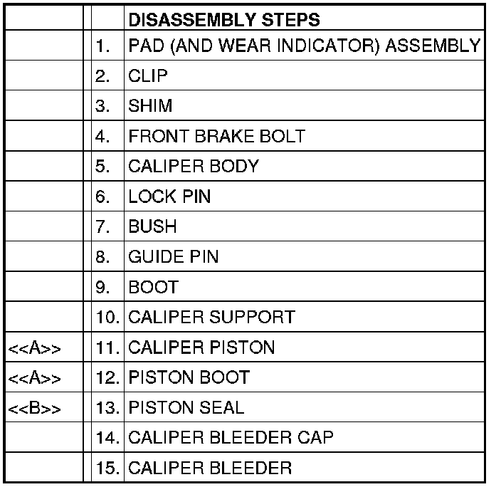 When disassembling the front disc brakes, disassemble both sides (left and right wheels) as a set.