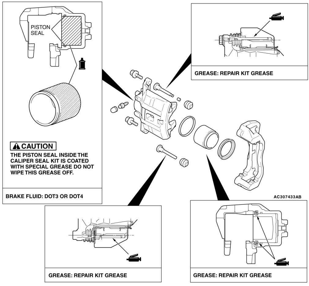 2. Clean the piston surface and inner cylinder with alcohol brake fluid DOT 3 or DOT 4.