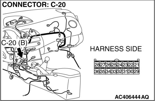 STEP 4. Check A/C-ECU connector C-20 for loose, corroded or damaged terminals, or terminals pushed back in the connector.
