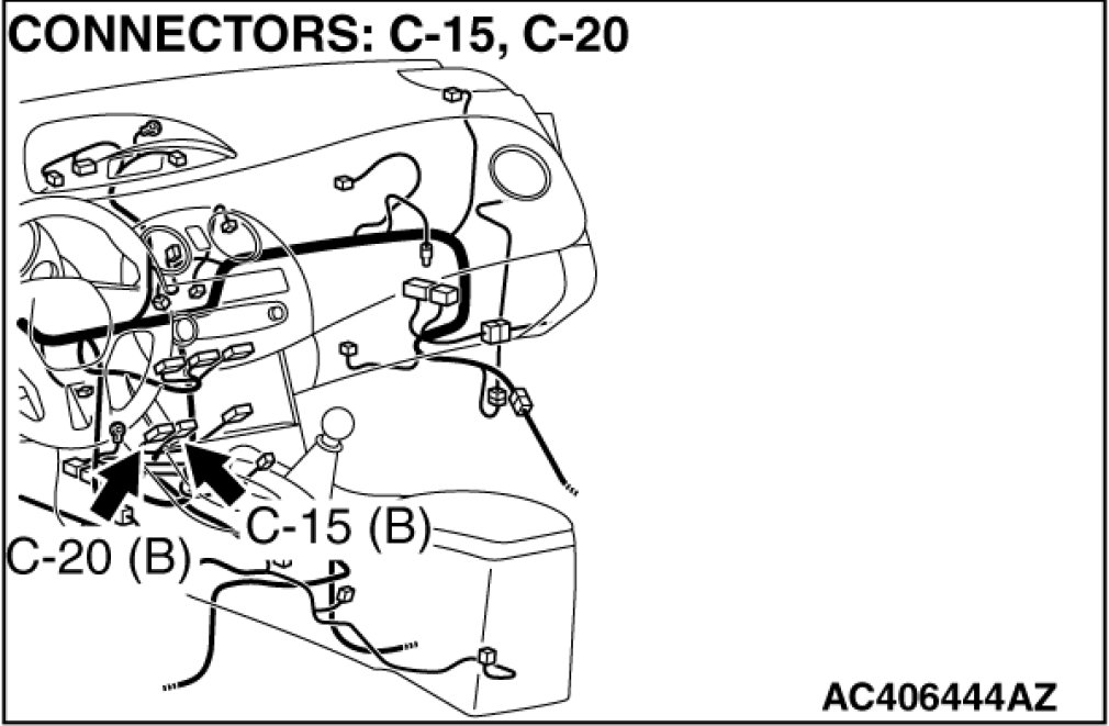 STEP 1. Check A/C-ECU connector C-15 for loose, corroded or damaged terminals, or terminals pushed back in the connector.