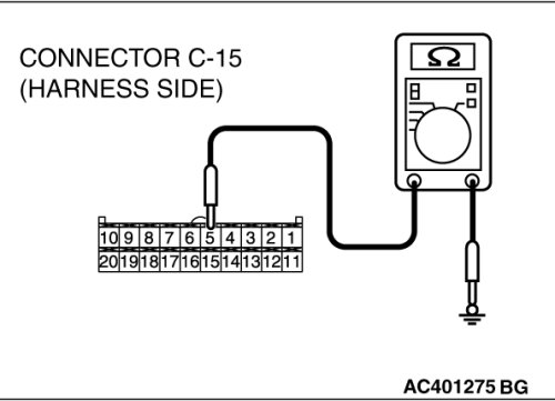 STEP 13. Measure the resistance at A/C-ECU connector C-15.