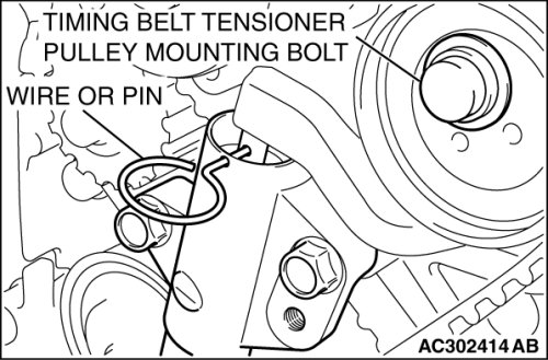 When the wire or pin can be easily removed, appropriate tension is applied on timing belt. In this case, remove wire or pin.