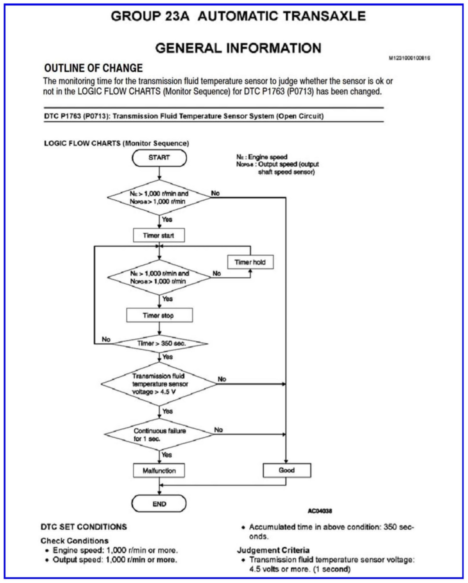 ^ Group 23 - Automatic Transmission: Monitor time for P1763 (P0713) reduced to 350 secs.