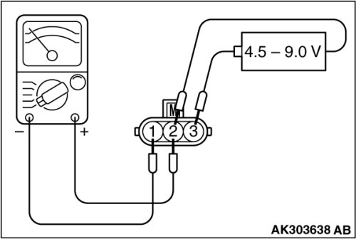 1. Connect and disconnect 4.5 - 9.0 V battery between terminal No. 2 and No.
