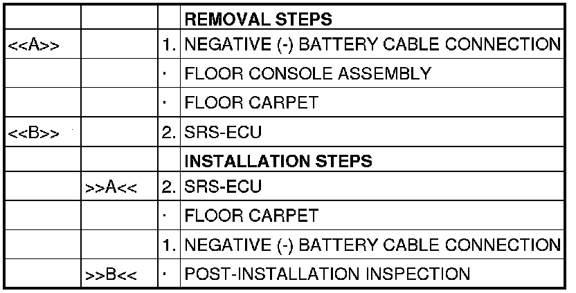 - Never attempt to disassemble or repair the SRS-ECU. If faulty, replace it.