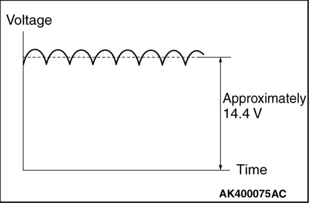The generator output voltage rises as the field current increases and it falls as the field current decreases. When the battery positive voltage (generator S terminal voltage) reaches a regulated voltage of approximately 14.4 V, the field current is cut off. When the battery positive voltage drops below the regulated voltage, the voltage regulator regulates the output voltage to a constant level by controlling the field current.