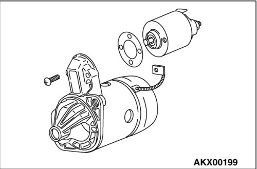 5. If the pinion gap is out of specification, adjust by adding or removing gasket(s) between the magnetic switch and front bracket.