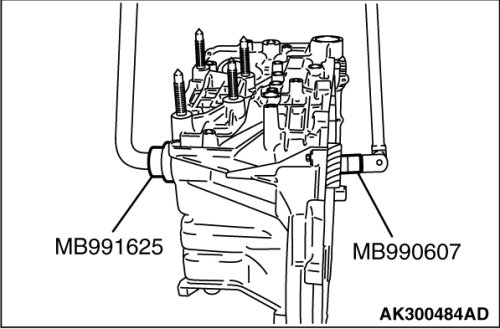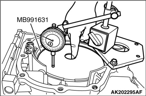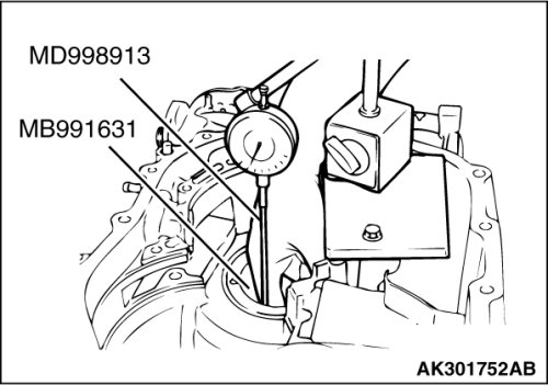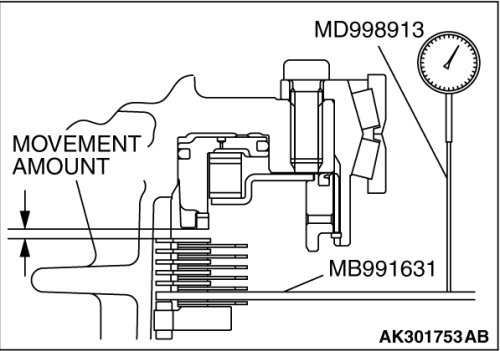 Install special tool MD998913 in a dial gauge, and then move special tool MB991631 and measure its movement.