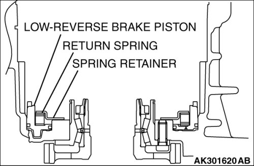 3. Install the low-reverse brake piston, return spring, and spring retainer into the transaxle case.