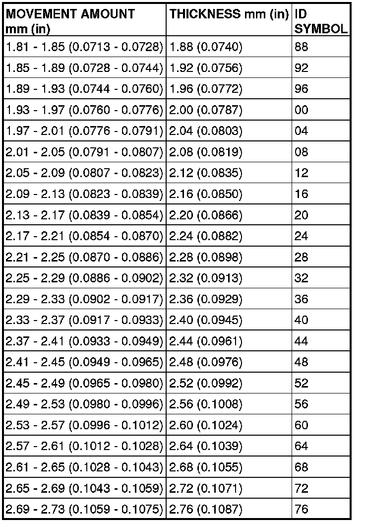 28. Select a spacer whose thickness corresponds to the measured amount of movement from the following table.