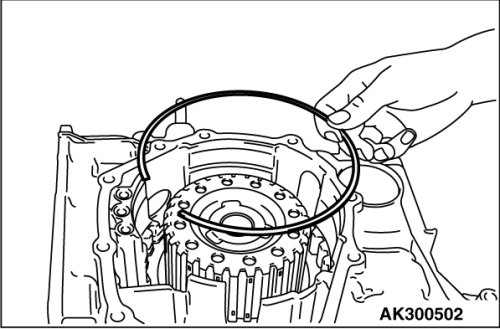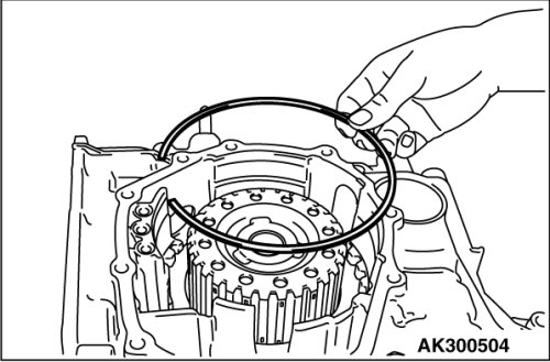 21. Install the snap ring into the groove of transaxle case output shaft bore.