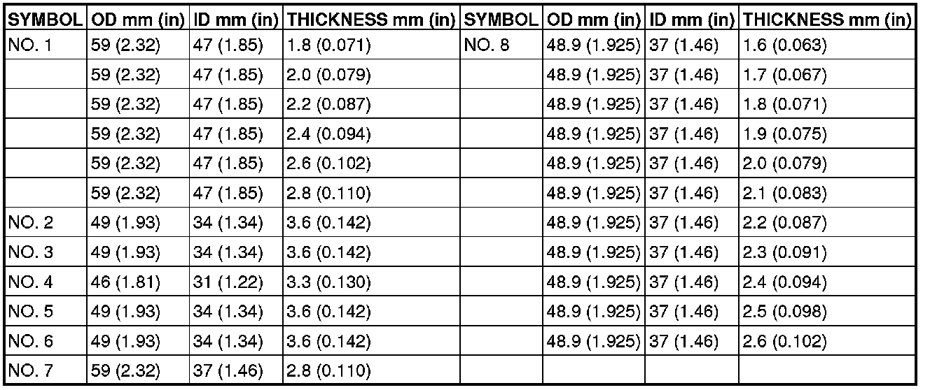 17. Select a pressure plate whose thickness corresponds to the measured amount of movement from the following table.