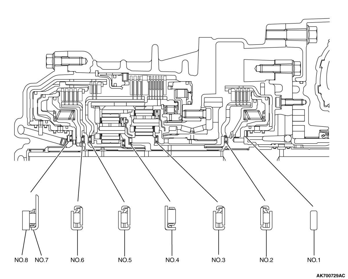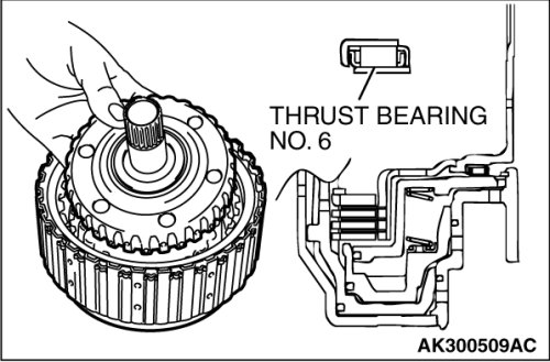 Check the installation direction of thrust bearing number 7, and install it on the reverse clutch retainer.