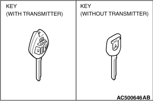 - When adding the ignition key separately, or replacing the components by the steering lock cylinder of illustration[ A] (the ignition key is simultaneously supplied) or the key set of illustration[ B], register the encrypted code. Immobilizer System.