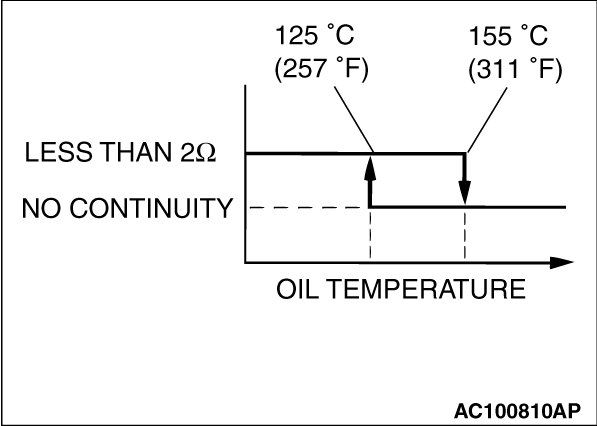 When the oil temperature is 155°C (311°F) or more and there is no continuity, the resistance will not be 2ohms or lower until the oil temperature reduces to 125°C