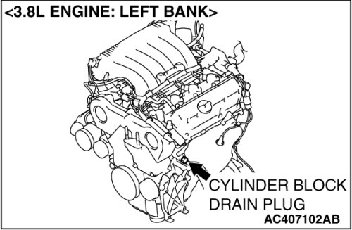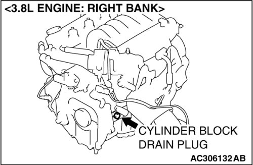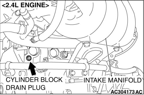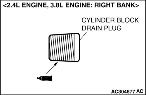 4. Drain the water in the water jacket by unplugging the drain plug of the cylinder block.