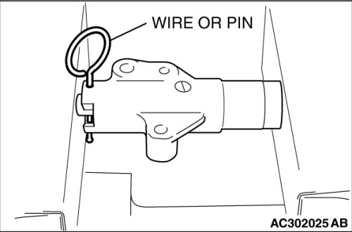 7. Remove the wire or pin inserted to timing belt tensioner adjuster.