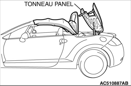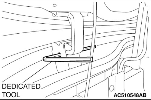 2. Raise the tonneau panel, and insert the dedicated tool into the hinge hole to hold the tonneau panel in place.