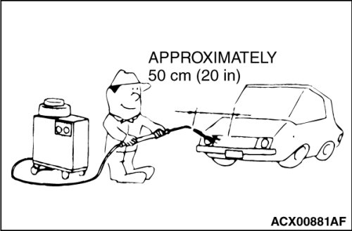 If high-pressure car-washing equipment or steam car-washing equipment is used to wash the vehicle, be sure to maintain the spray nozzle at a distance of at least approximately 50 cm (20 inches) from any plastic parts and all opening parts (doors, luggage compartment, etc.).