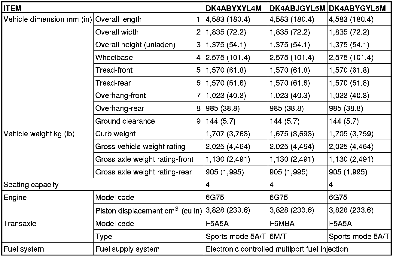 GENERAL SPECIFICATIONS (2.4L ENGINE)