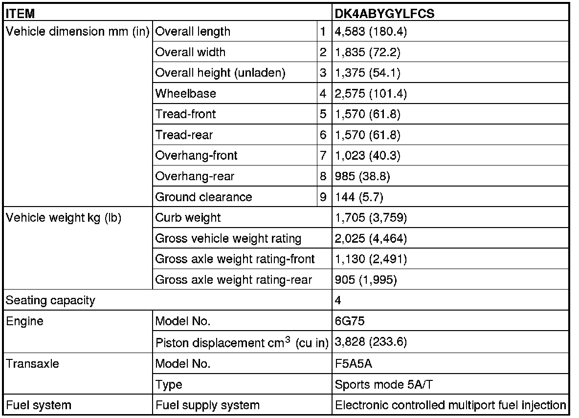 GENERAL SPECIFICATIONS (3.8L ENGINE)