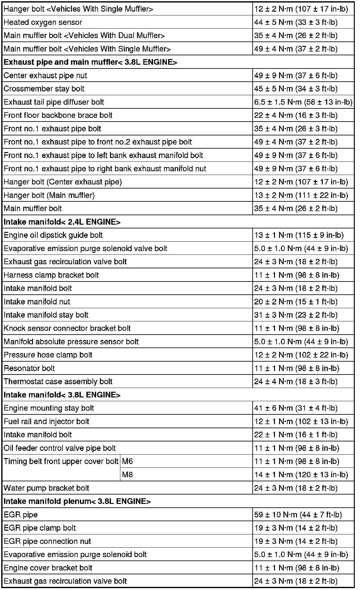 FASTENER TIGHTENING SPECIFICATIONS