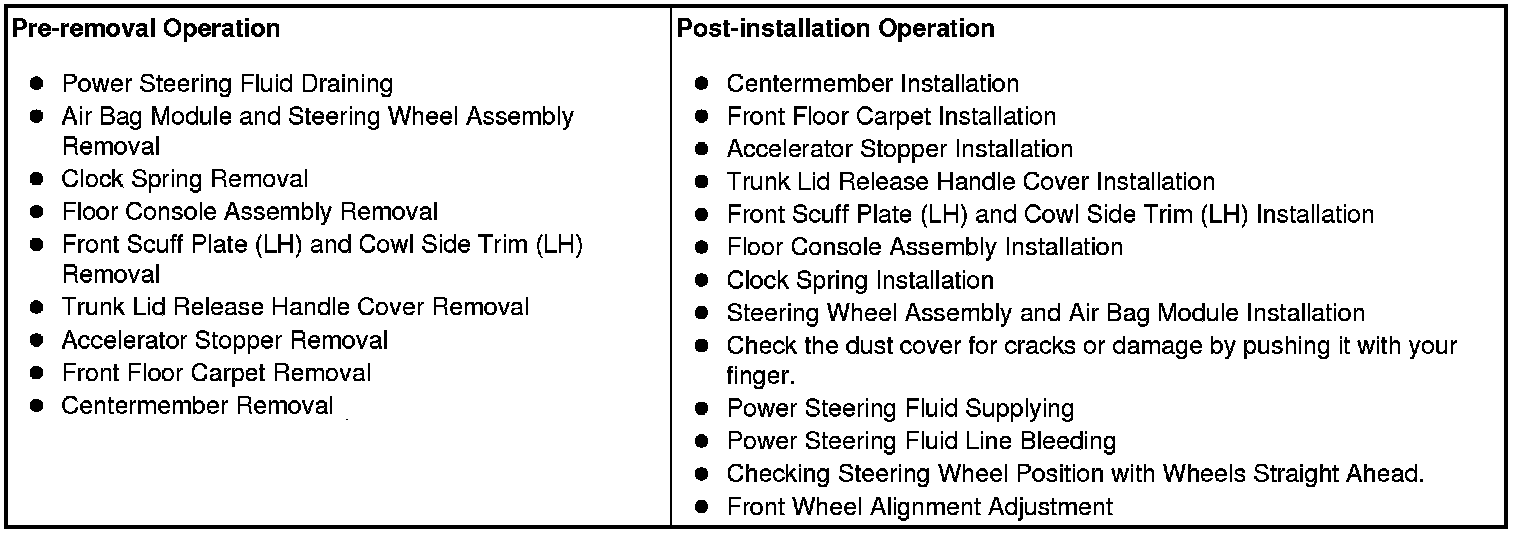 [[A]] STEERING COLUMN ASSEMBLY AND STEERING GEAR DISCONNECTION