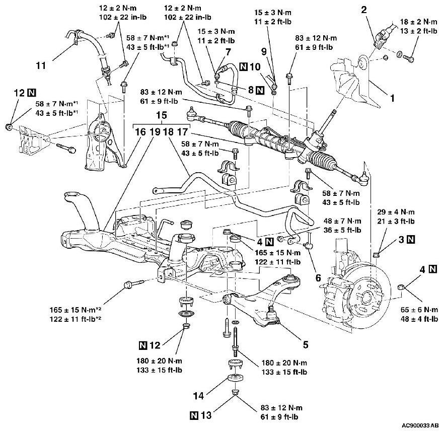 - *1: Indicates parts which should be initially tightened, and then fully tightened after placing the vehicle horizontally and loading the full weight of the engine on the vehicle body.