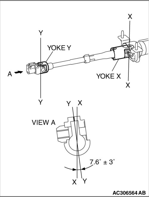 If the steering column shaft is removed accidentally, remove the steering column assembly and be sure to insert the steering column shaft into the steering column as shown in the figure.