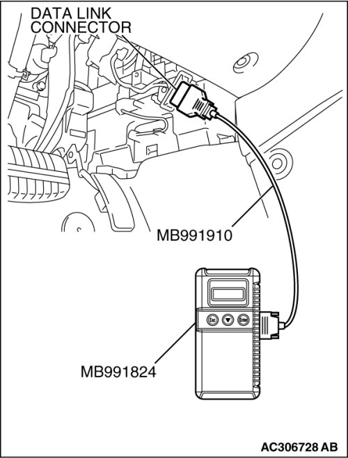 Connect special tool MB991824 (V.C.I.) to the data link connector.