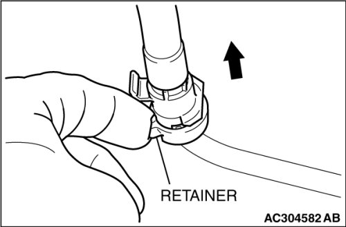 2. Remove the fuel high-pressure hose in the direction shown in the figure while the retainer is pulled up.