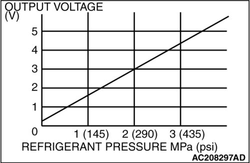 4. At this time, check to see that the voltage of A/C pressure sensor terminal No. 2 reflects the specifications of the figure.