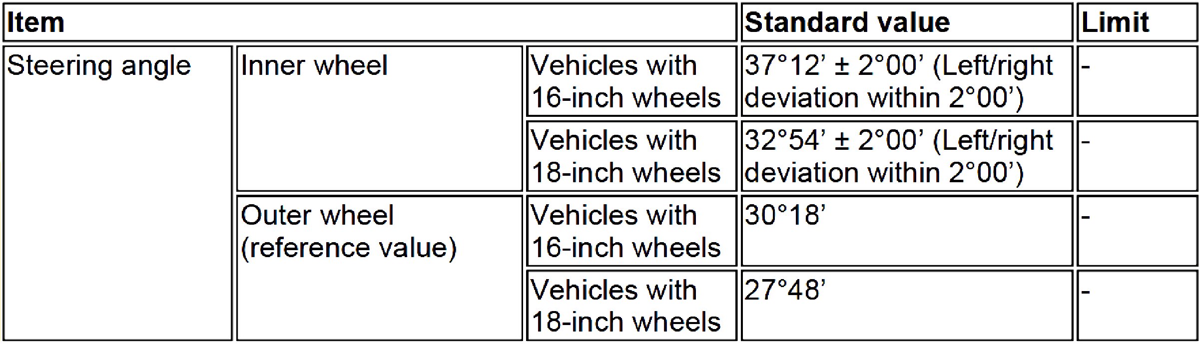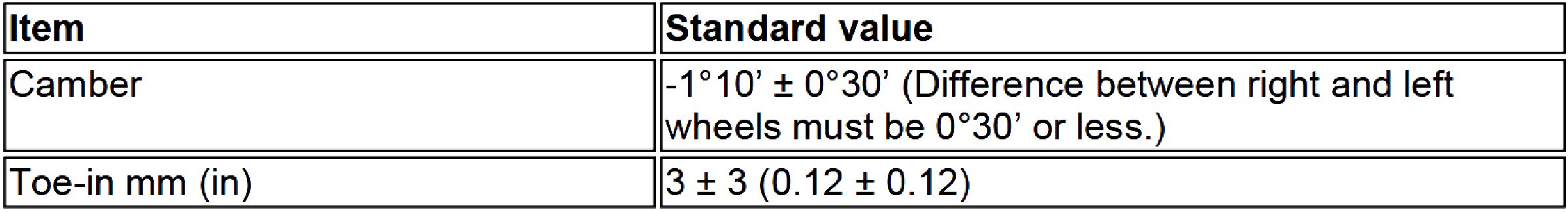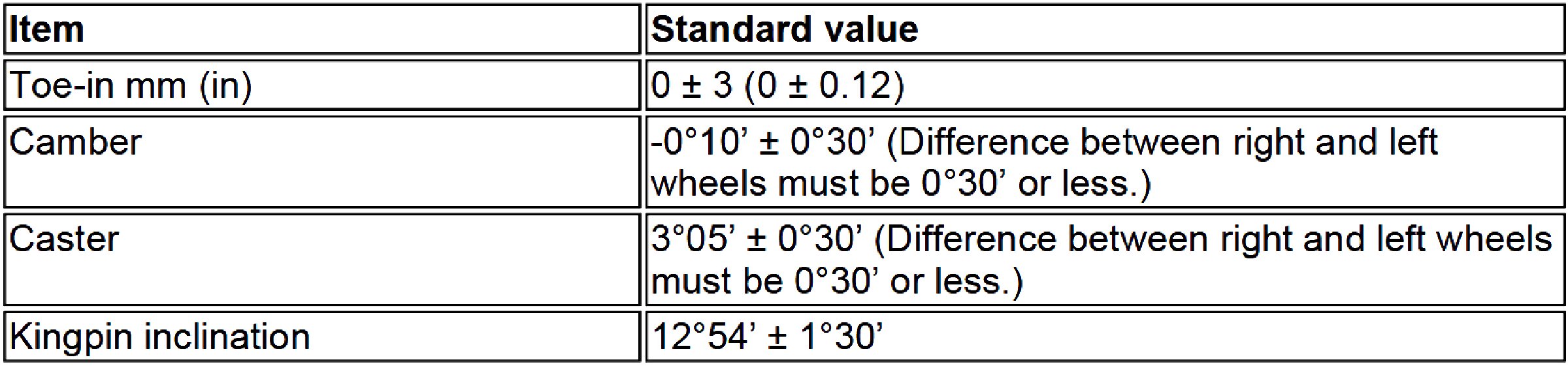 Wheel Alignment Specifications