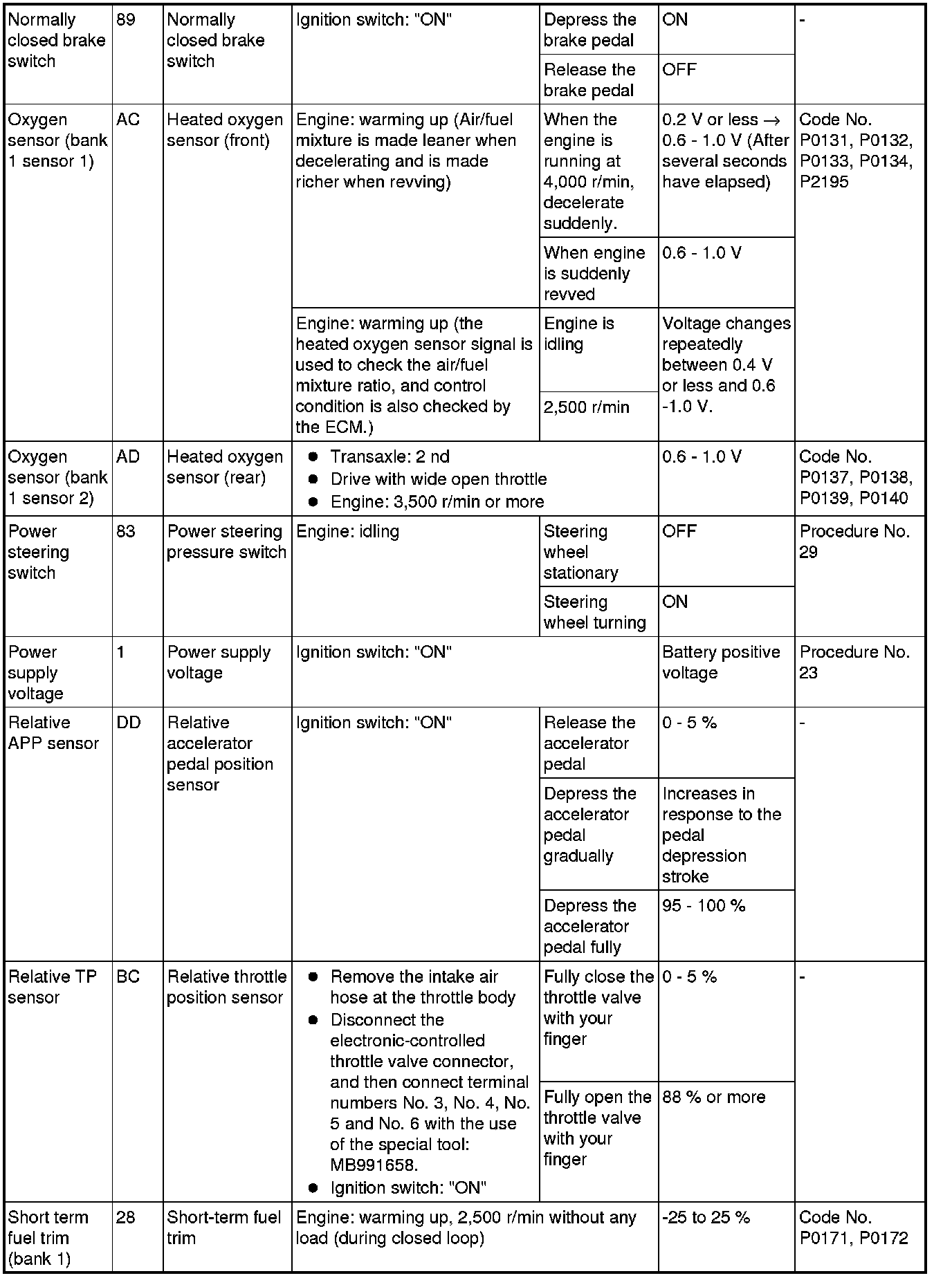 *5: Data items are displayed on scan tool display, but the in-line 4 engine is not applicable and its data is displayed as "N/A".