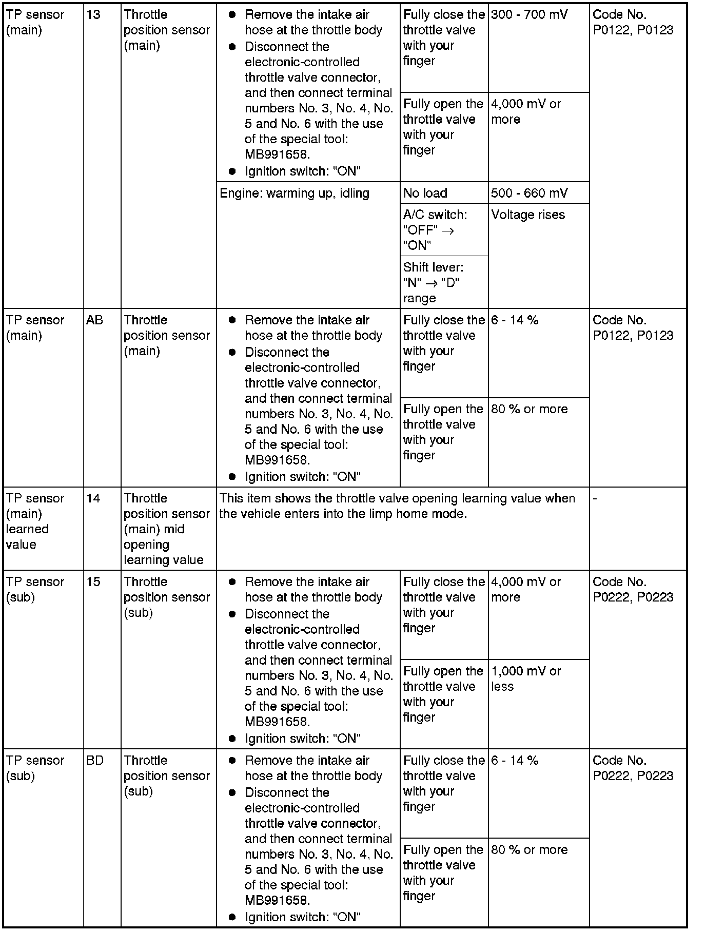 *1: In a new vehicle [driven approximately 500 km (311 mile) or less], the mass airflow sensor output value is sometimes 10% higher than the standard value.